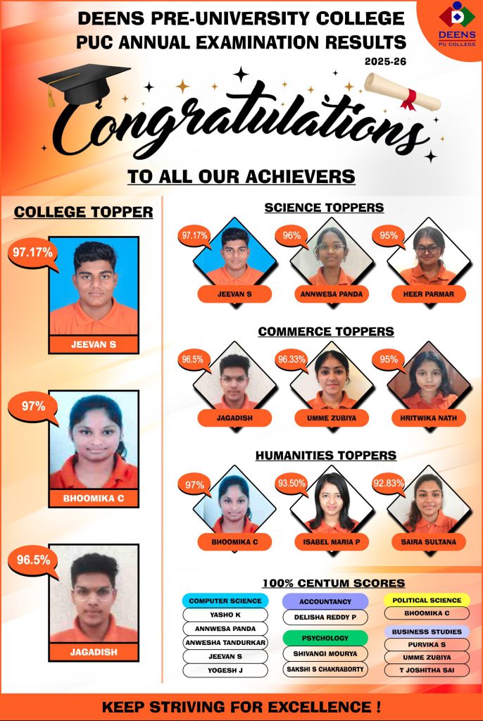 The Deens Academy is an renowned educational institution in Whitefield established in May 2006. The Pre-University college at the Deens Academy Gunjur campus for the academic session 2019-20 with options of science and commerce streams is our latest facility, initiated with a vision to provide a holistic higher education opportunity, will further benefit our students.